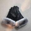 Hermes Rabbit Fur Black Leather Gloves / Cashmere lining / Elegant for winter / Cozy Gloves