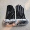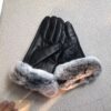 Hermes Rabbit Fur Black Leather Gloves