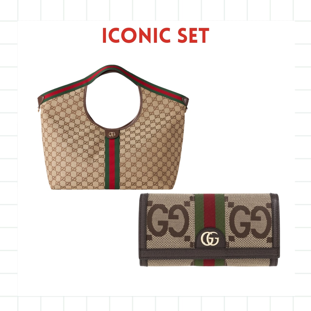 ICONIC SET: GUCCI GIGLIO LARGE TOTE BAG & OPHIDIA JUMBO GG LONG WALLET