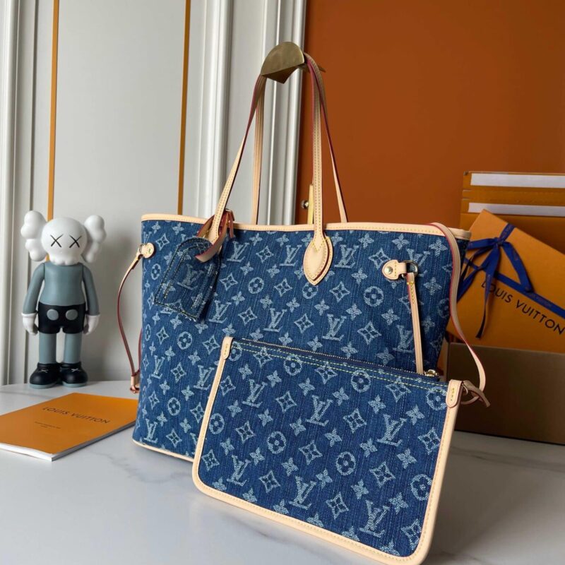 LOUIS VUITTON NEVERFULL MM BAG DENIM BLUE 32CM M13192