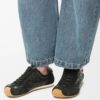 These sneakers feature an asymmetrical toe shape, a sock-like interior, and a lightweight rubber outsole that extends to the toe cap.