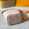 Celebrating 130 years of the Louis Vuitton Monogram, this anniversary edition of the All In BB showcases the House’s vintage-inspired update on the iconic signature. It is crafted from Monogram Origine canvas, includes a gold-toned padlock and celebratory address tag. Inside, it is lined with striped fabric and has a zipped pouch that can also be used as a solo accessory.