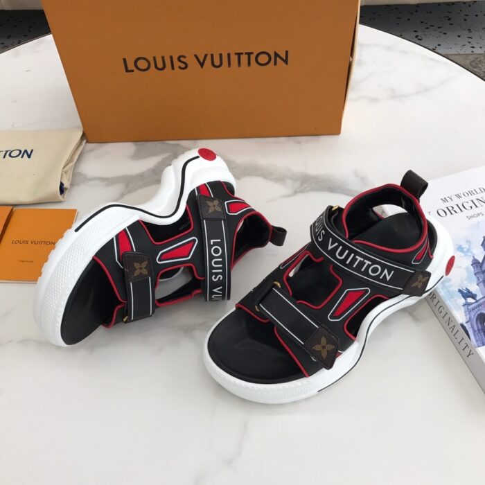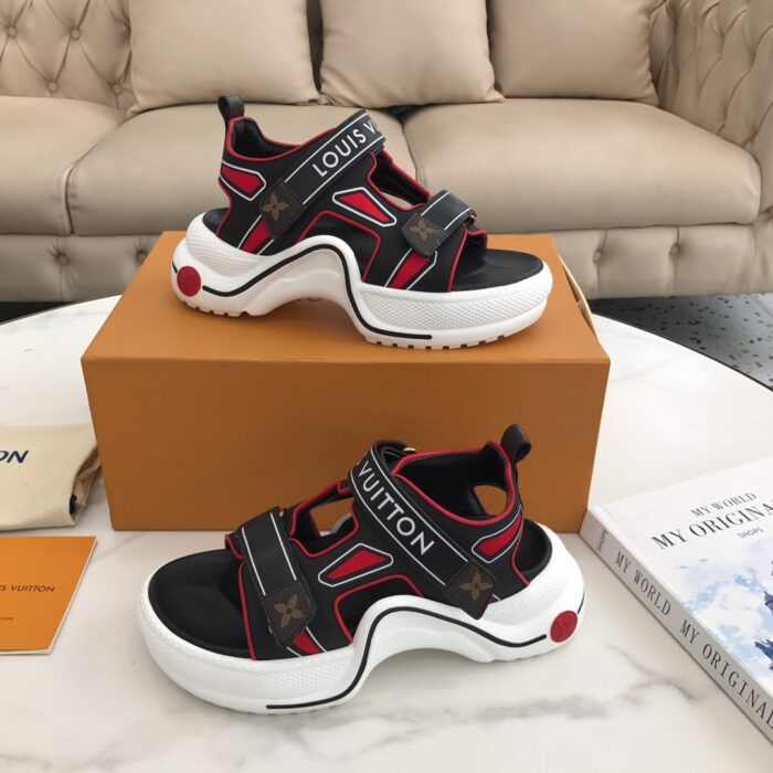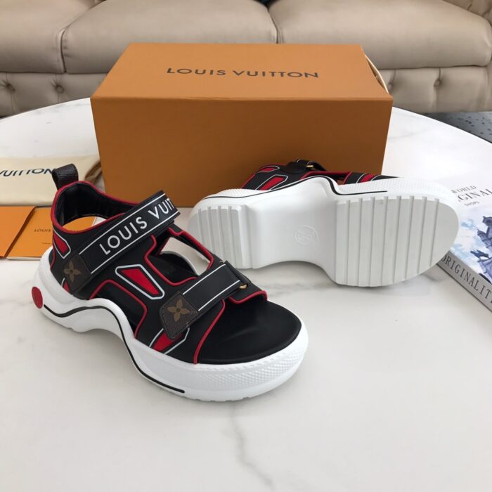 LOUIS VUITTON ARCHLIGHT MONOGRAM RED SANDALS