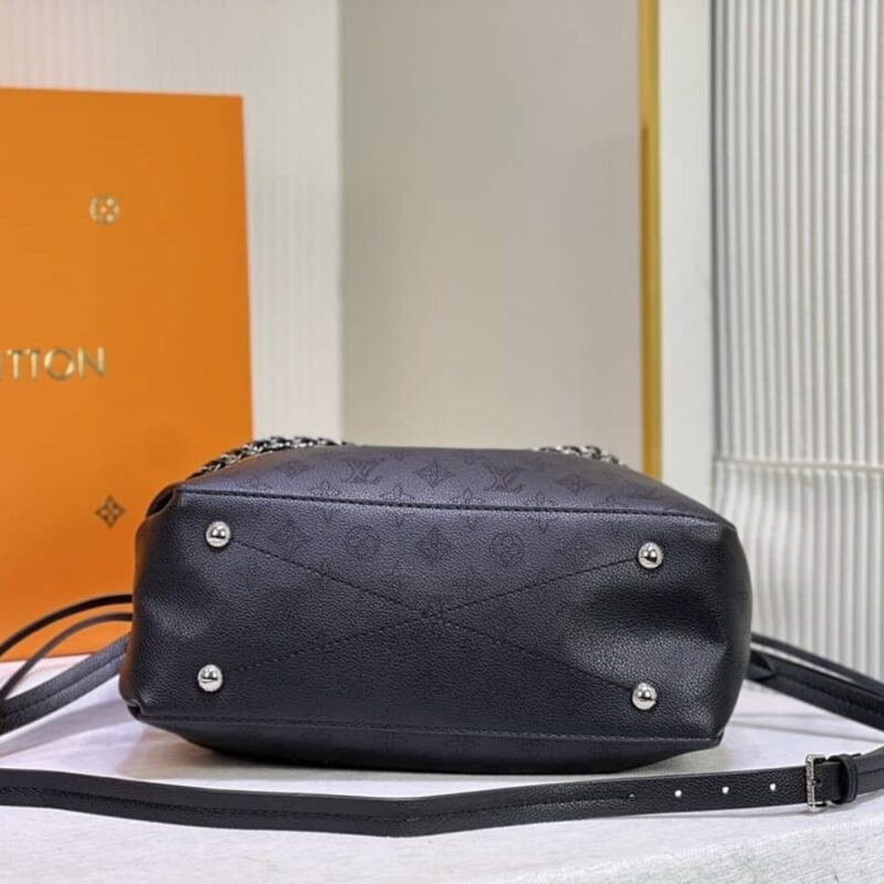 The Bella Tote is crafted from supple Mahina leather. The signature perforated leather is softly pleated and draped, and embellished with a jewel-like chain. Generously sized, with a well-organized interior, it is an ideal bag for every day use. Offered in a timeless colorway, this modern tote will complement any casual-chic silhouette.