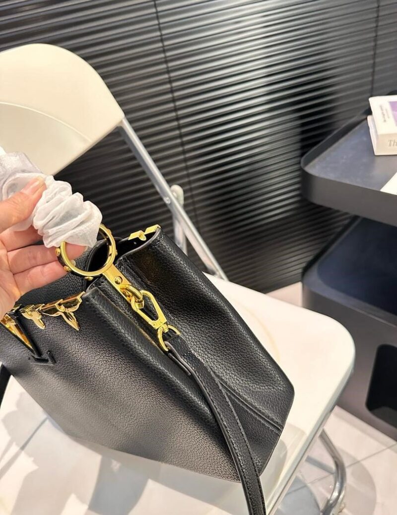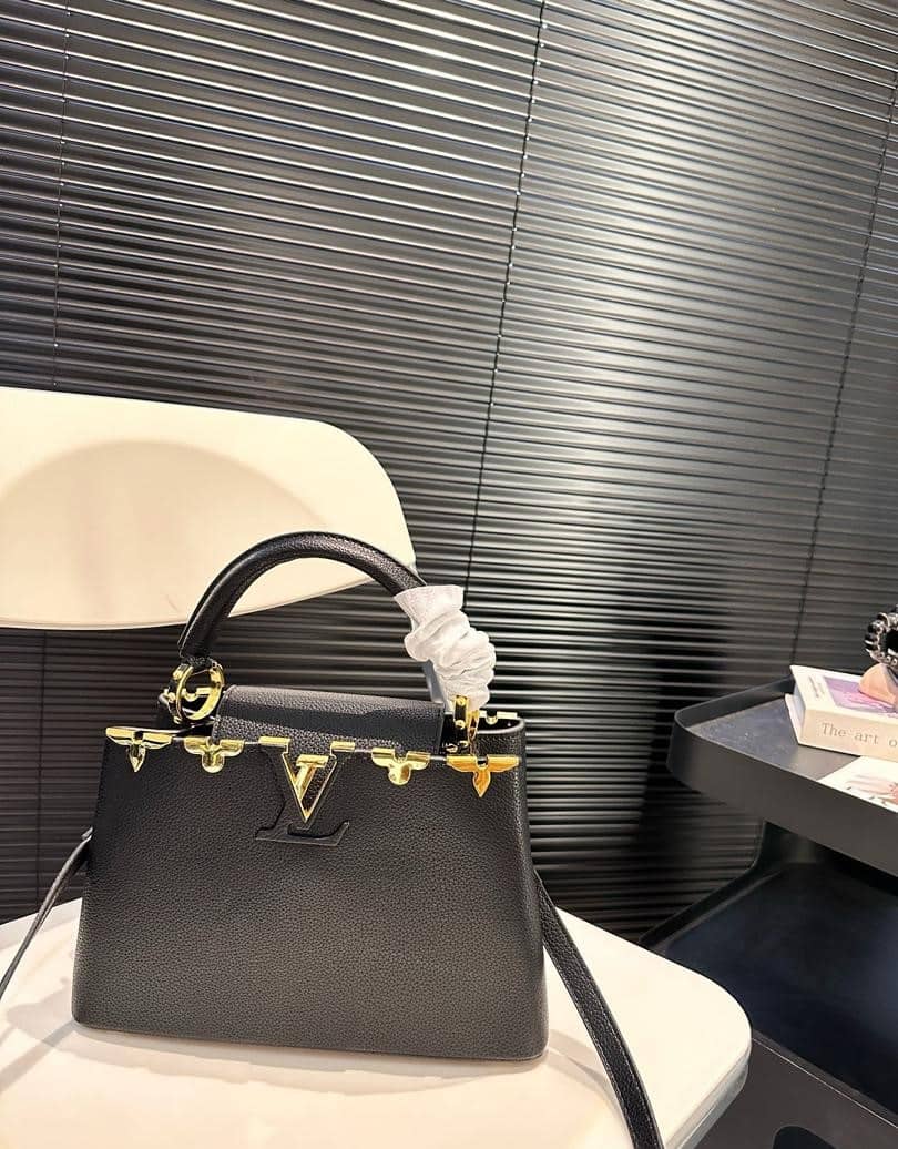 Louis Vuitton// Capucines Mm Bag// Black //27cm //M54663