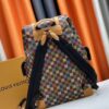 The Christopher MM backpack is fashioned from LV Vers Damier Ebene canvas. The multicolored checks on top of the Damier Ebene canvas, evoking an array of flags and the message of togetherness defined by Pharrell Williams for this collection. It is signed with a globe-shaped tag inscribed LV Vers UNITED.