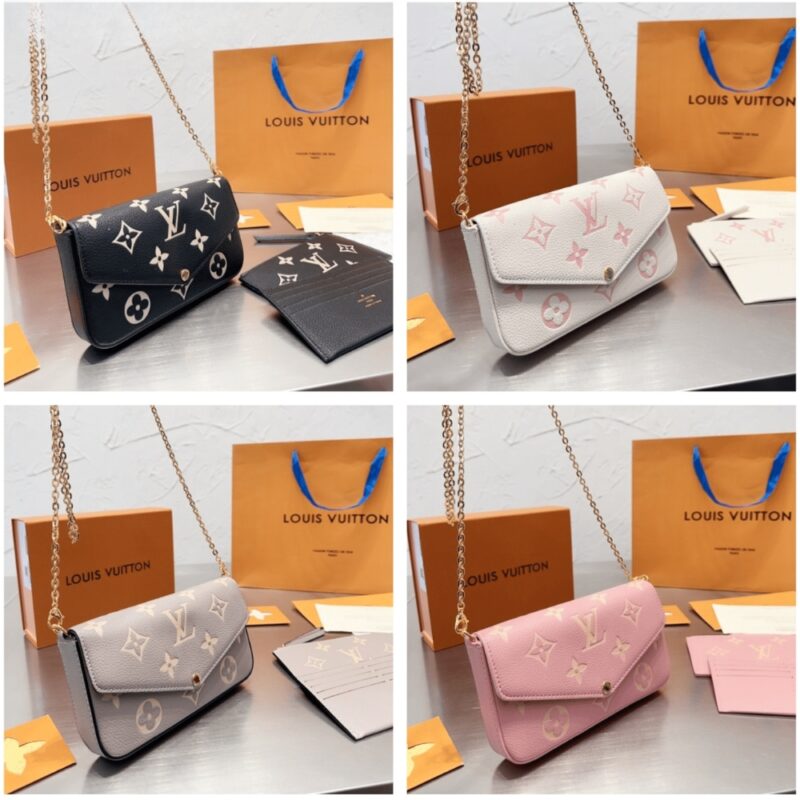 The Pochette Félicie is crafted from supple Monogram Empreinte leather, embossed with Louis Vuitton’s iconic Monogram pattern. The bicolor palette brings added refinement to this elegant and versatile design, which features a removable chain, enabling it to be carried on the shoulder or as a clutch, as well as two removable pockets.