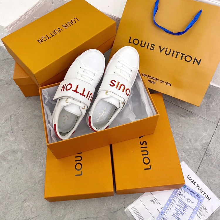 LOUIS VUITTON FRONTROW LOGO STRAP WHITE RED
