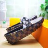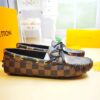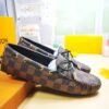 A rubber-pad outsole with the Damier pattern. - A leather lace with Louis Vuitton-engraved, gold-tone lace tips.