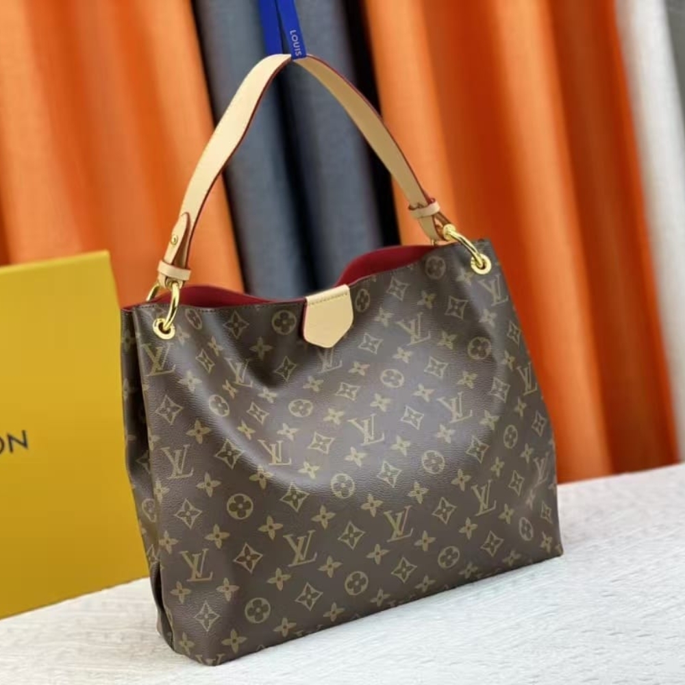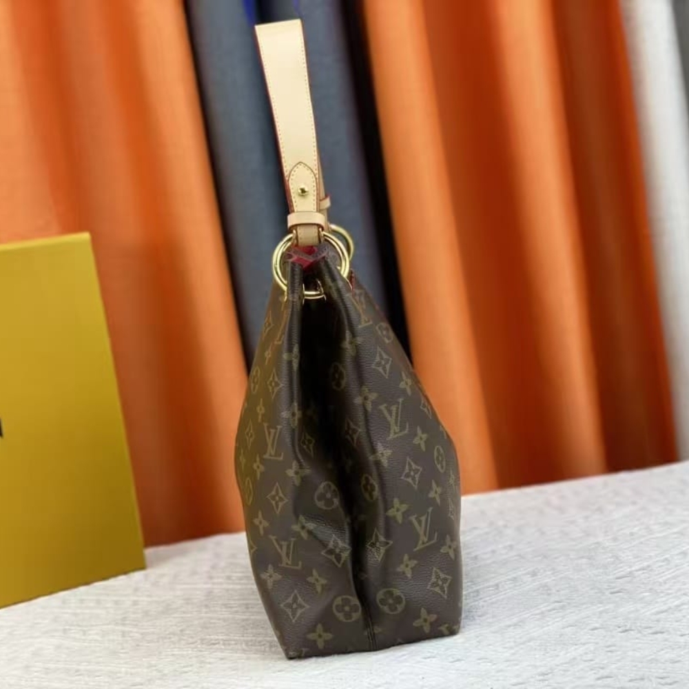 The Graceful PM hobo in classic Monogram canvas is a lightweight, roomy bag to carry every day. Natural leather detailing and golden hardware add a refined touch. The body-friendly design combines with a supple, flat handle for stylish and comfortable over-the-shoulder wear. The magnetic closure and zipped inside pocket keep belongings secure.