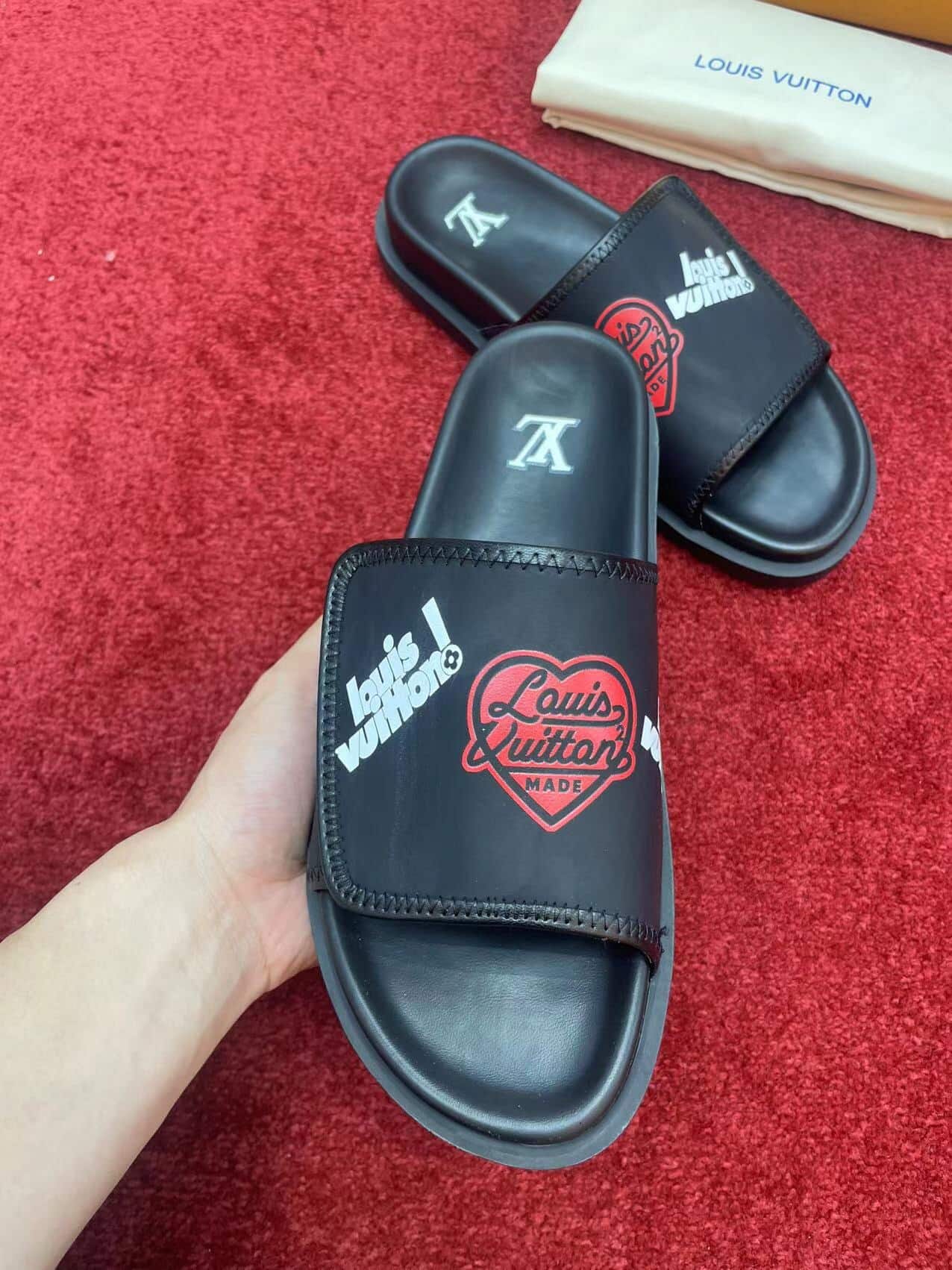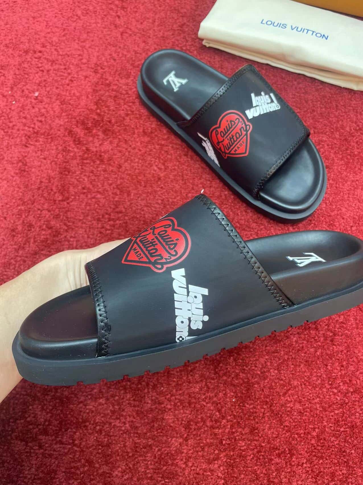 LOUIS VUITTON HEART FLAT SLIDES BLACK