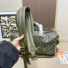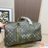 Pharrell Williams brings a trekking vibe to a timeless shape. The Keepall 50 Backpack is reimagined for modern travel in Monogram Surplus coated canvas, with its camouflage feel. The square shape and multiple carrying options make it adaptable. A zipped front pocket offers quick access to essentials and stores the detachable straps.
