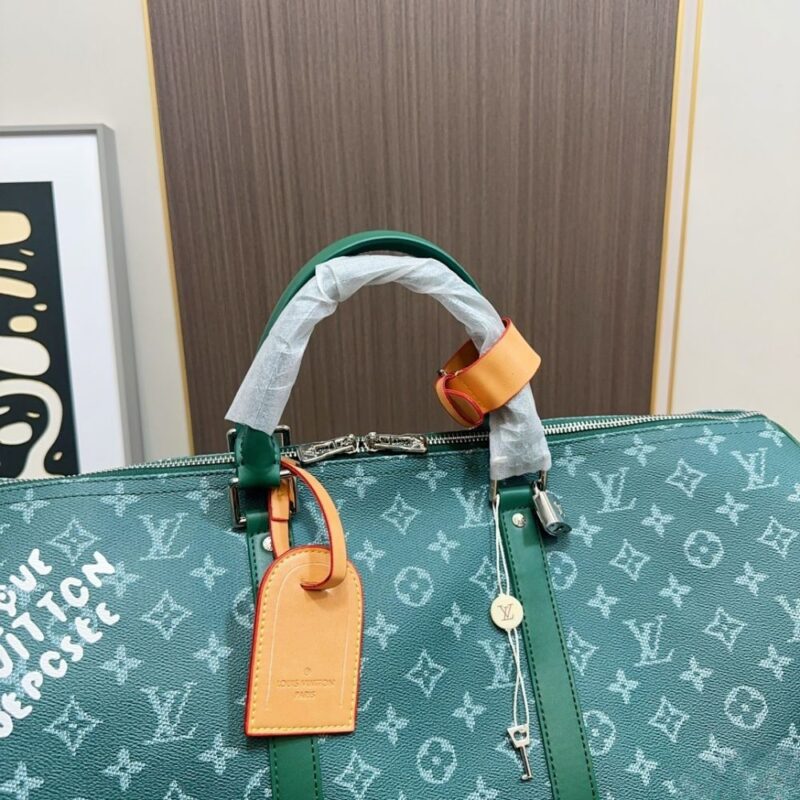 The House’s iconic Keepall Bandoulière 50 bag is made from colorful Monogram Heritage canvas with matching leather trim and leather for the shoulder strap and removable name tag. It features the historic Marque L. Vuitton Déposée signature, a nod to the House’s long-standing legacy.