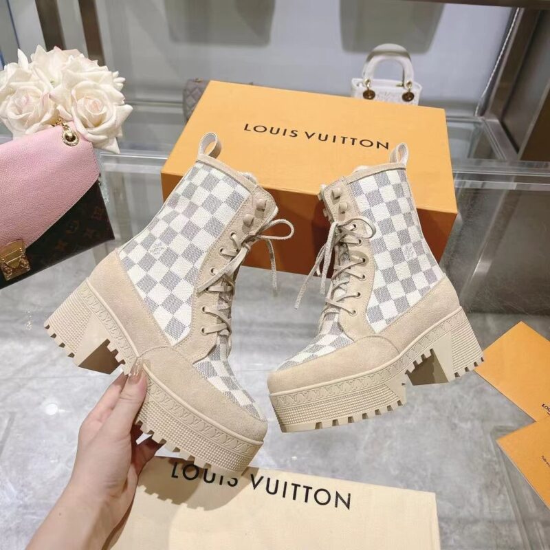 LOUIS VUITTON LAUREATE PLATFORM DESERT BOOT DAMIER AZURE
