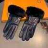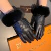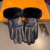 Louis Vuitton Leather Gloves Lv Embroidery With Fur/ Black