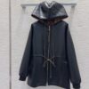 - Contrasting drawstrings at the hood and waistline