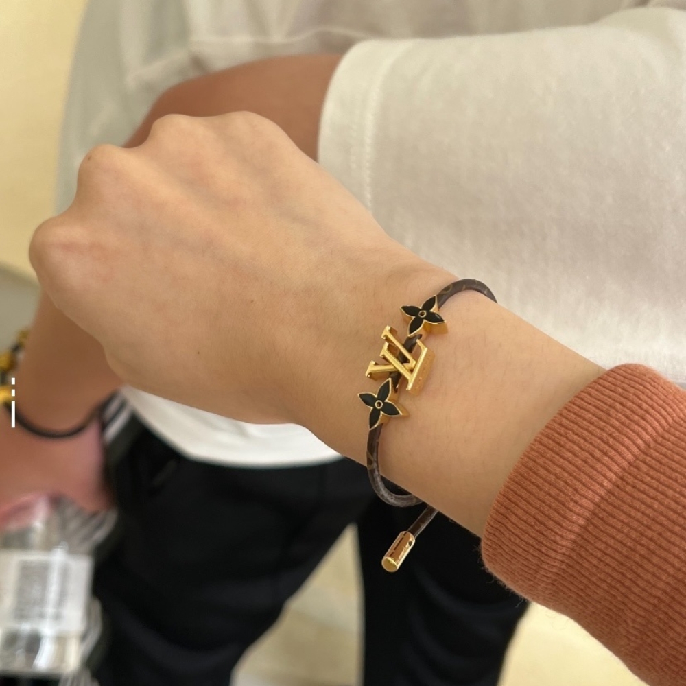 Louis Vuitton LV Iconic Bracelet Monogram Brown / Gold metal / Monogram Flowers / Fit Daily Essentials / Luxury Jewelry