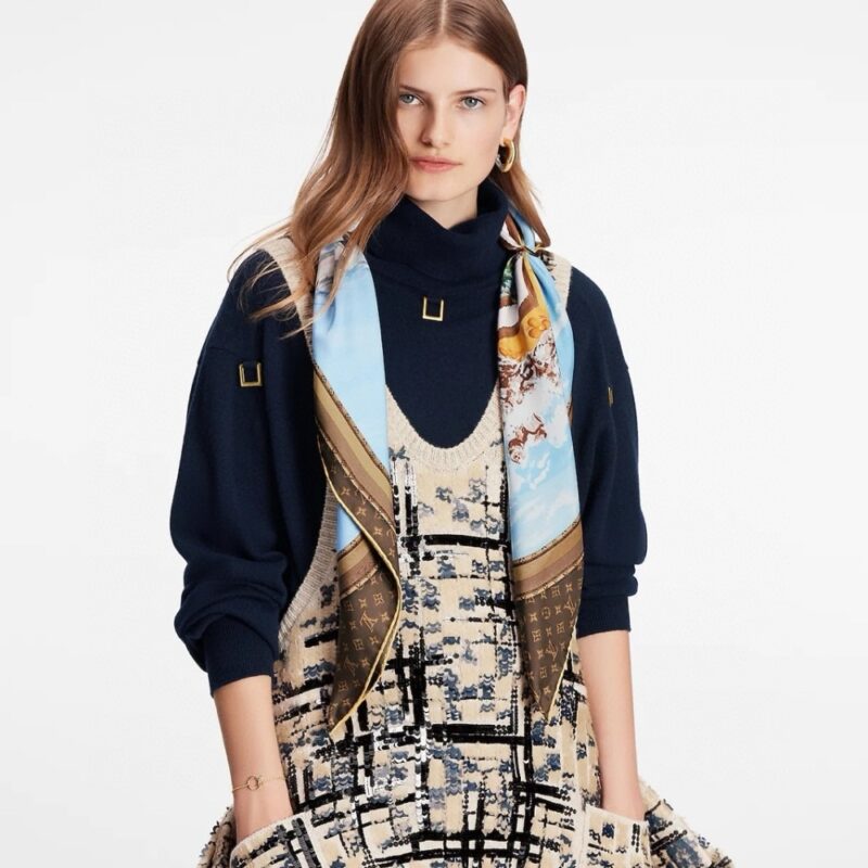 Louis Vuitton Lv Marina 90 Scarf In Brown 90cm M78195/ 90cm/ 35.4 inches
