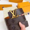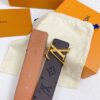 The Louis Vuitton LV Pyramide Belt is a modern reimagining of a House signature, originally introduced under the creative direction of Virgil Abloh. It features the iconic Monogram coated canvas on the front side. The standout design element is the permanent Pyramide buckle, which showcases a distinctive raised profile and a brushed gold-colored finish. This statement-making accessory combines traditional monogramming with sophisticated geometric hardware for a contemporary look.