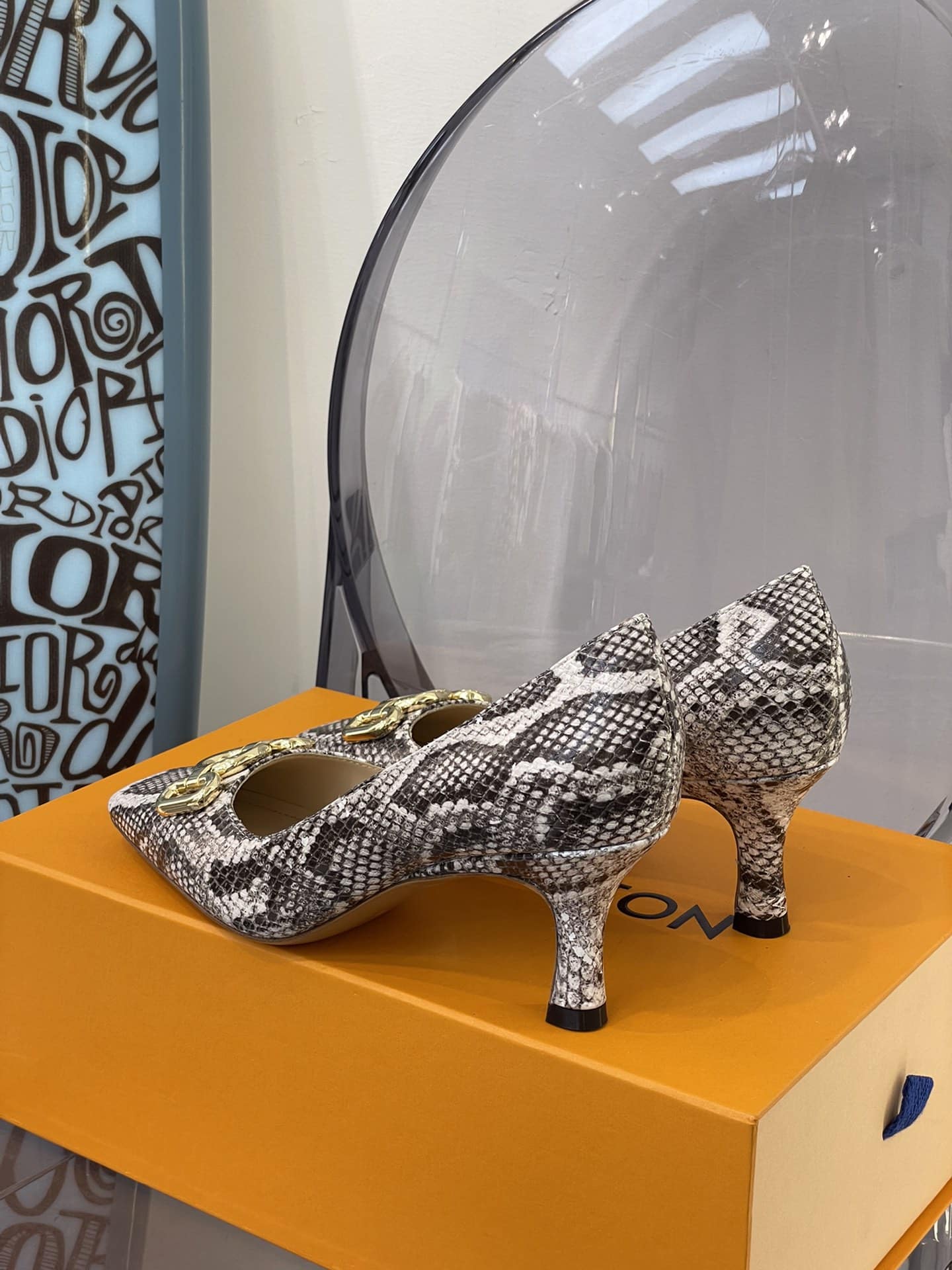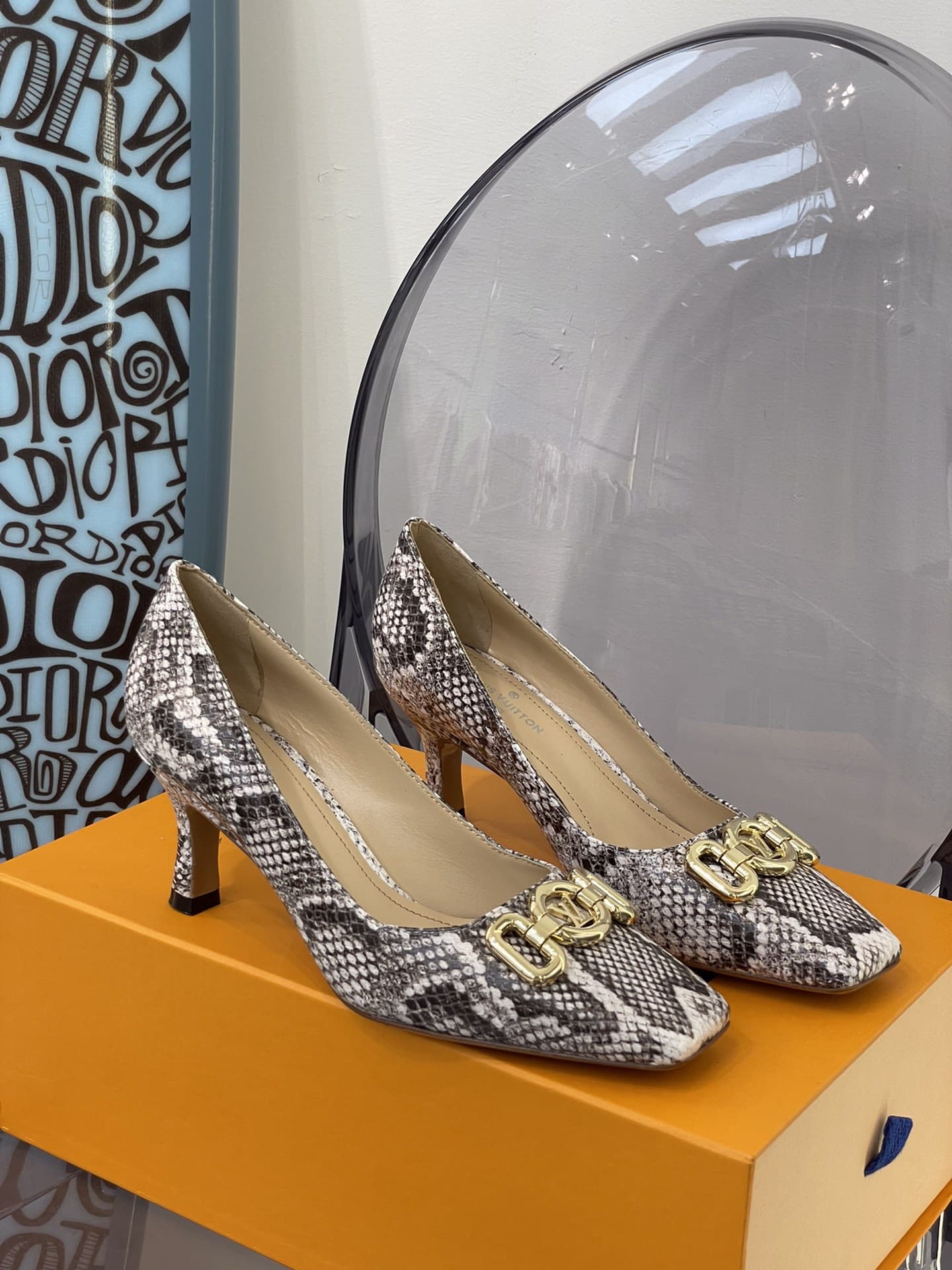 LOUIS VUITTON LV SQUARE TOE SNAKE PRINT HEEL PUMP