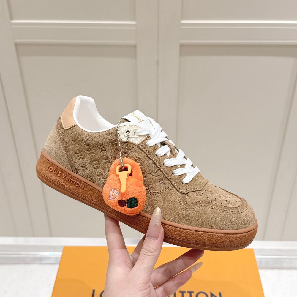 The vintage-inspired design of the LV Stadium sneaker is complemented by suede calf leather, which is partially debossed with the Mini Monogram pattern. This model is trimmed at the back with natural leather, referencing Louis Vuitton Leather Goods, which is hot-stamped with the House signature. This model is finished with a lightweight rubber outsole.