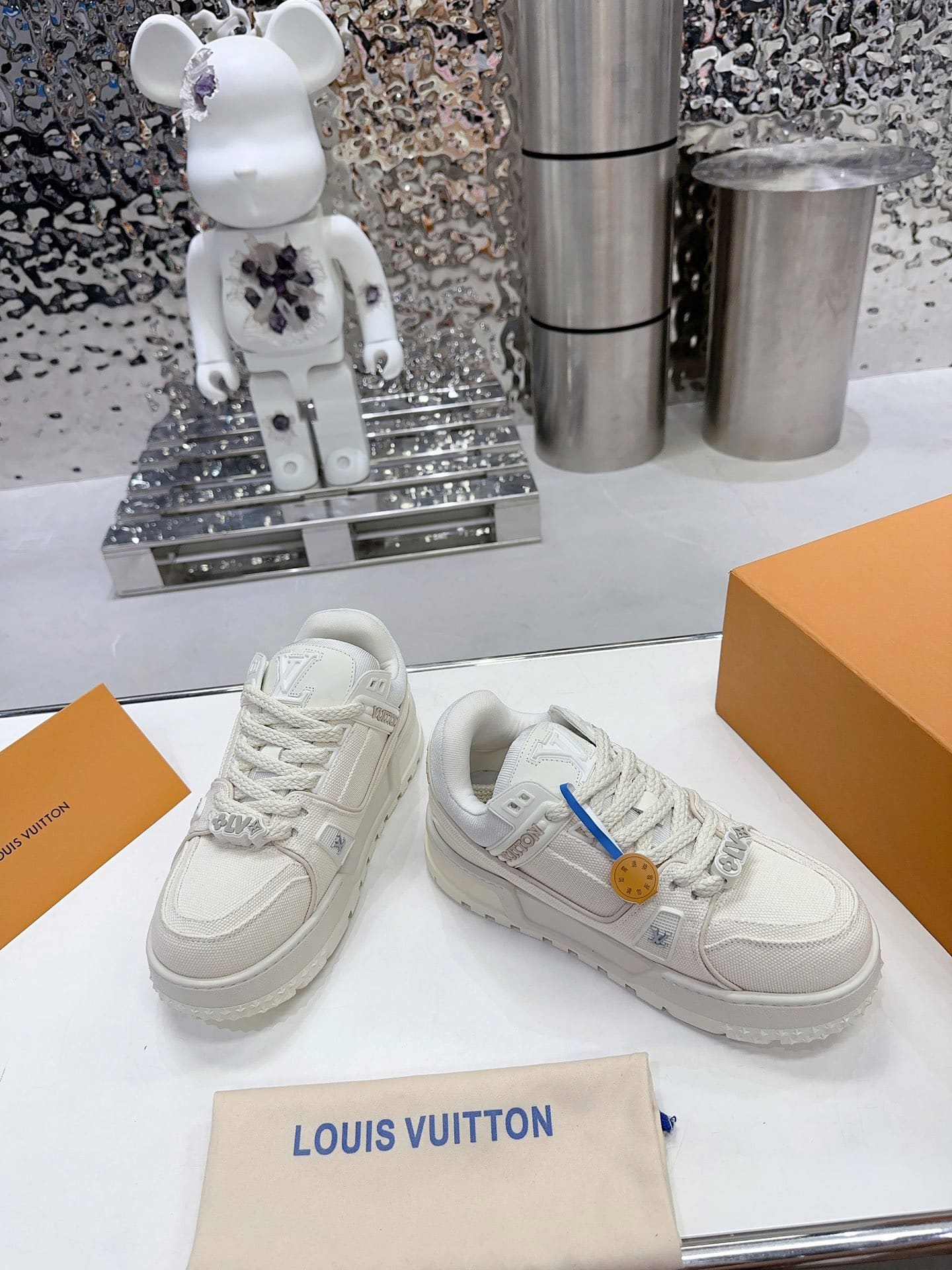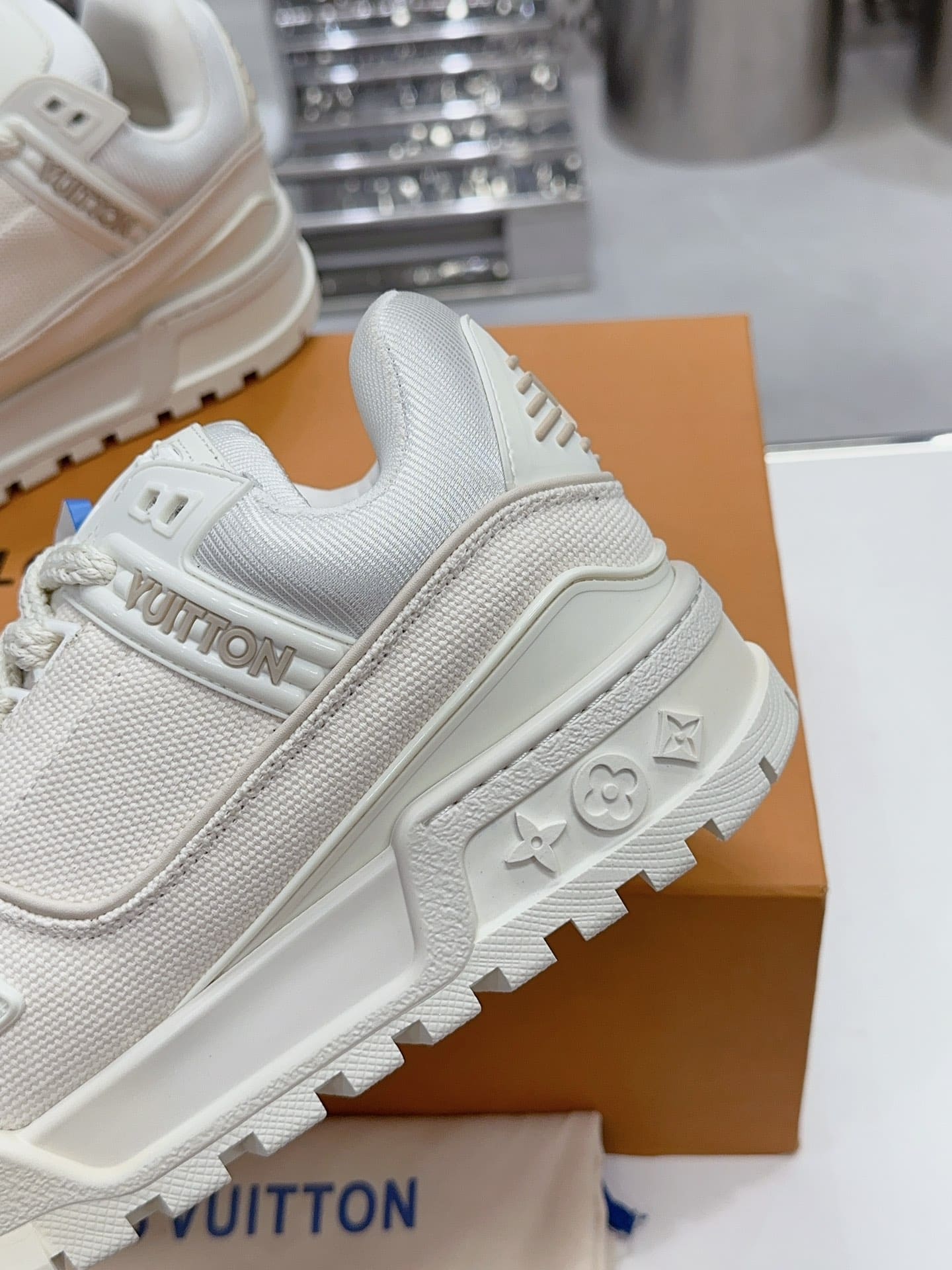 LV Initials on the tongue, side and back