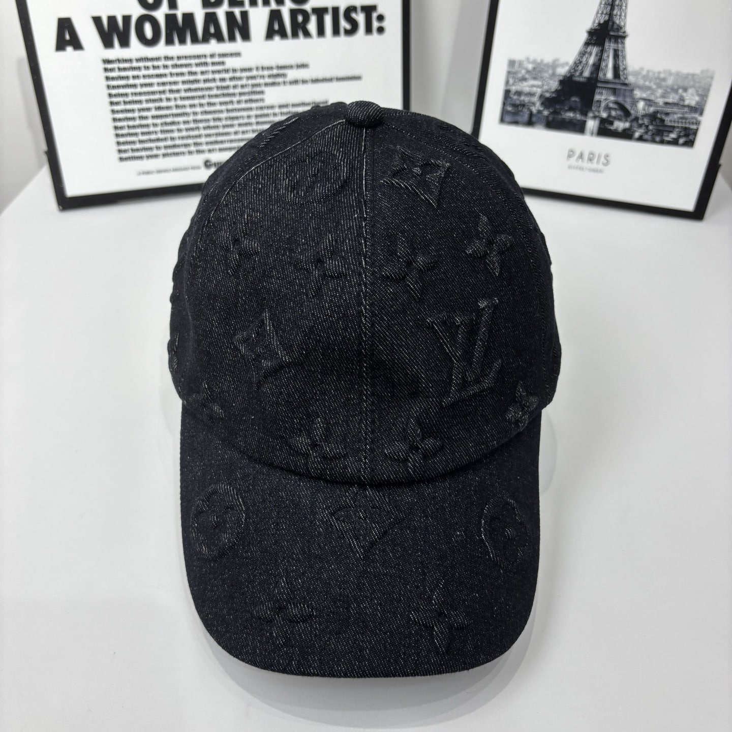 Louis Vuitton Monogram Denim Baseball Cap In Washed Black