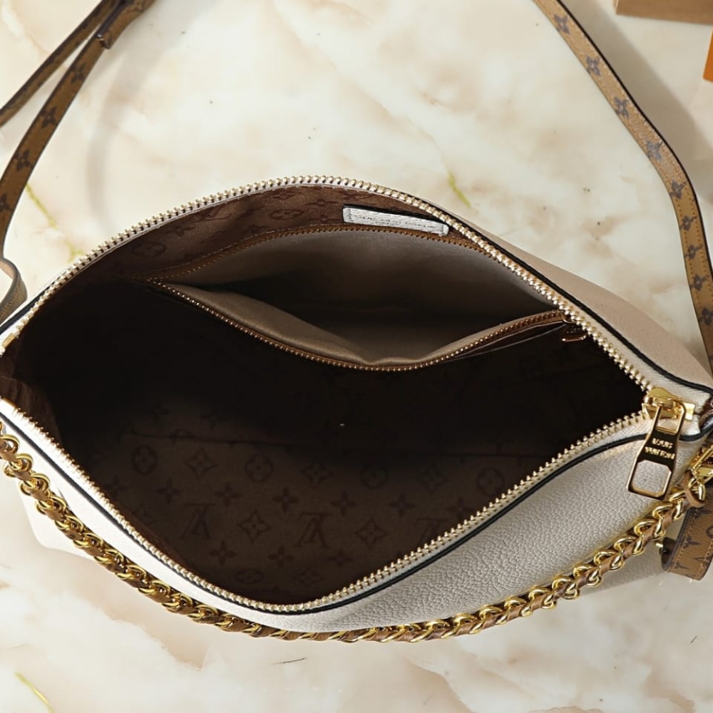 Louis Vuitton Multipass Bag / Leather / Vanille / 11.8 x 3.9 x 10.2 inches / Gold-color hardware / Fits smartphone, long wallet, makeup pouch, and daily essentials / Versatile and chic shoulder bag
