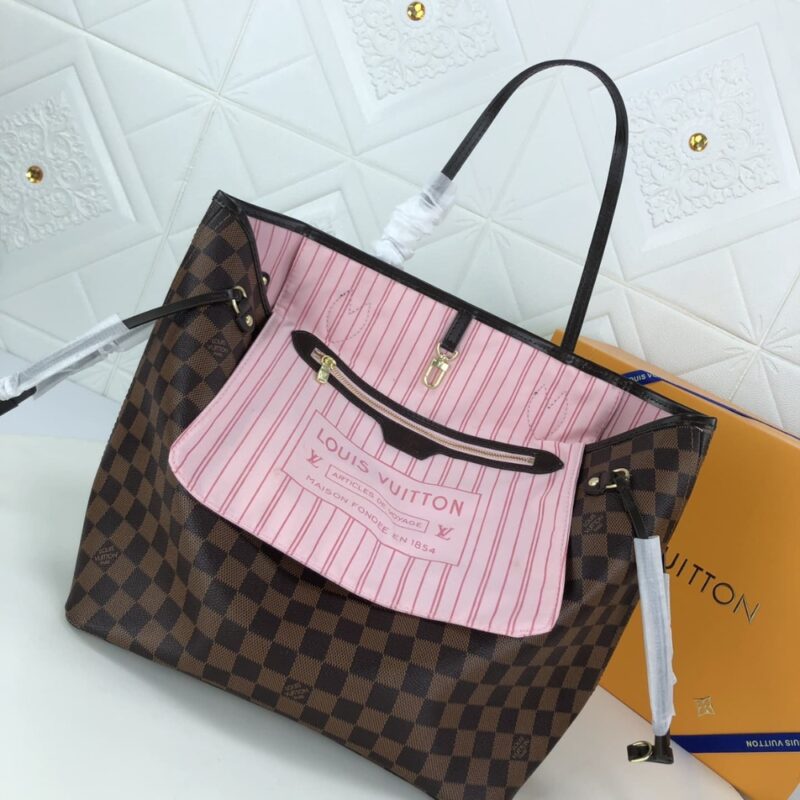 LOUIS VUITTON NEVERFULL GM DAMIER EBENE LIGHT PINK 39CM N41357