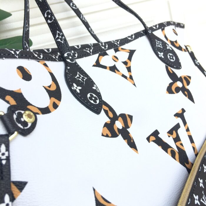 - Louis Vuitton’s signature Neverfull gets a wild new twist with a giant animal print Monogram in a reversible ivory and havana beige Coated Canvas