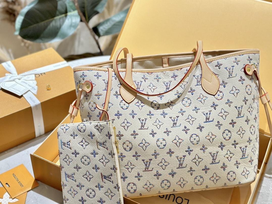 Louis Vuitton//Neverfull Mm Monogram Jacquard Fabric//Multicolor Beige//32cm//M24905