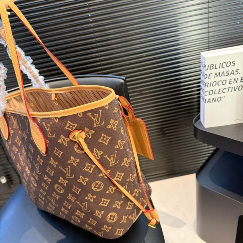 The Louis Vuitton Neverfull MM Monogram Origine Ebène is a special edition released to celebrate the 130th anniversary of the iconic Monogram motif. It features the classic brown Monogram coated canvas with leather trim and unique archival-inspired details, such as a celebratory internal leather label. A spacious interior that includes a removable zipped pouch and a special anniversary address tag. This collector’s piece combines heritage design with daily functionality, featuring signature side laces to adjust the bag’s shape and slim handles for comfortable shoulder carry.