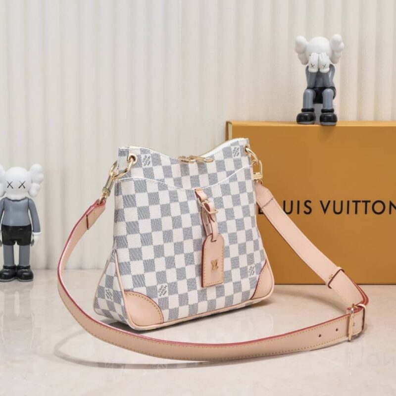 This Louis Vuitton Odeon Shoulder Bag features the iconic Damier Azur canvas, accented with smooth leather trim and gold-tone hardware for a refined, feminine look. Designed with an adjustable strap and compact yet practical interior, it’s perfect for everyday use or casual outings. A timeless luxury designer bag, it effortlessly blends elegance, functionality, and classic Louis Vuitton style.