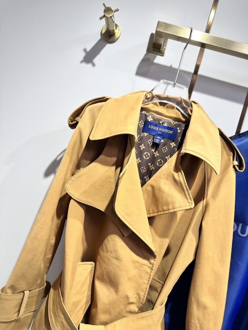 - This timeless trench is crafted from gabardine in a classic sandy shade for an effortlessly elegant look.