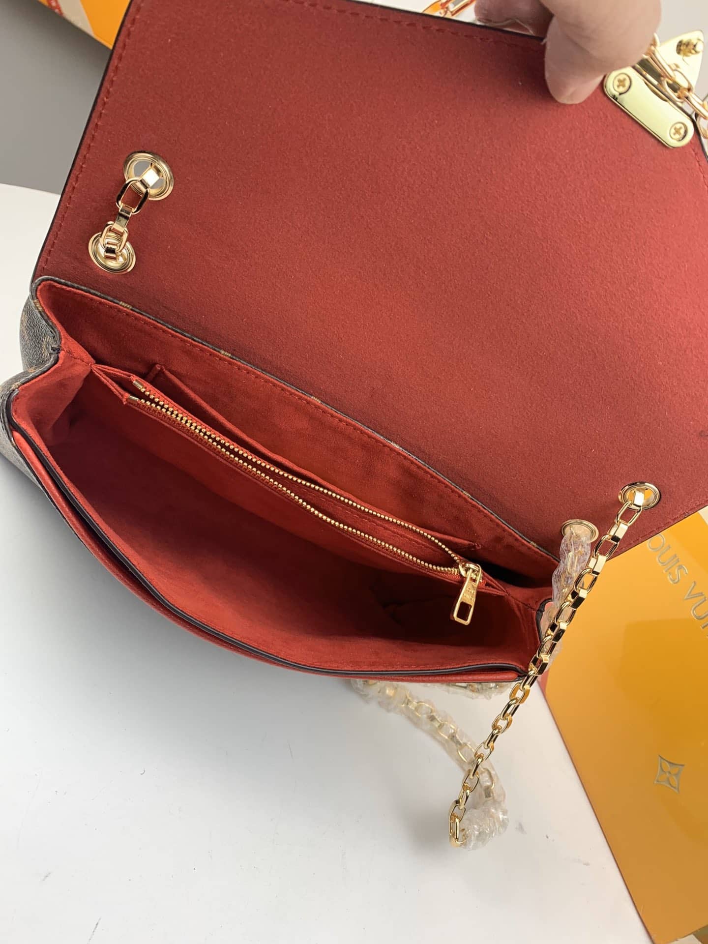 LOUIS VUITTON PALLAS CHAIN CANVAS MONOGRAM SHOULDER BAG RED