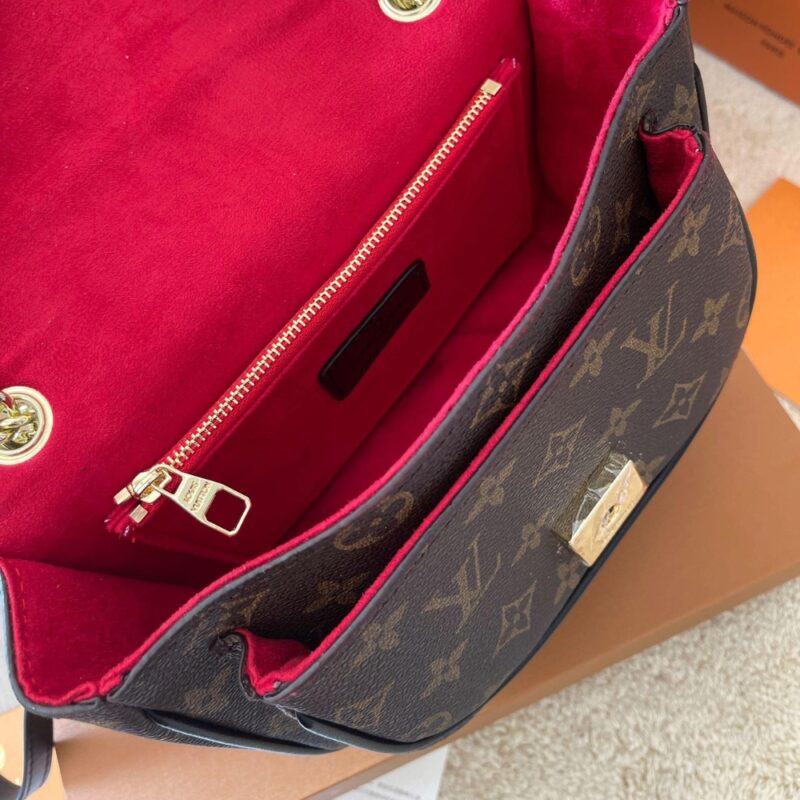 The compact Passy handbag in Monogram canvas with a sliding chain is the quintessence of casual chic. A functional day-to-evening bag, it has front and back outside pockets for quick access to essentials as well as two inside pockets. It closes with a magnetic LV lock in black resin with a gold-color outline.