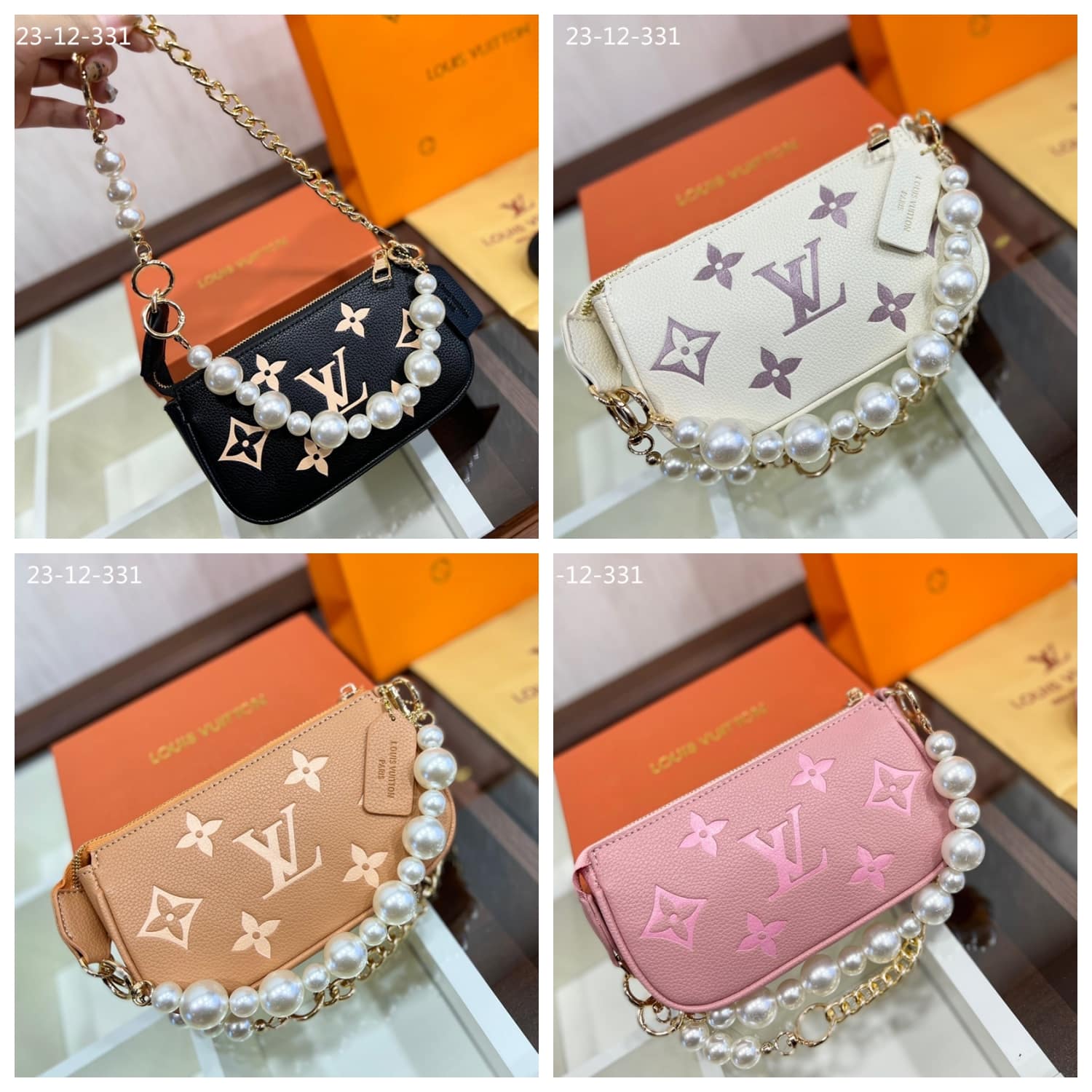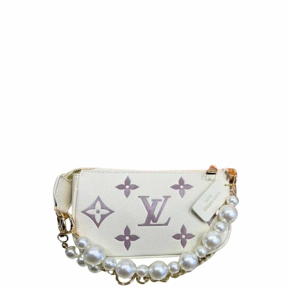 Louis Vuitton Pochette Accessoires With Pearl Chain / White 20cm