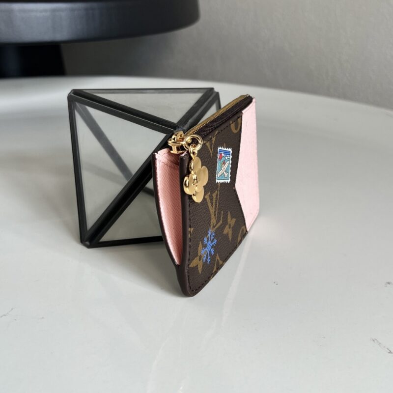 The Romy Card Holder is given a playful update as part of the Vivenne Winter Holiday collection. This edition is offered in signature Monogram canvas with a Snowy Pearl leather lining and is adorned with a Vivienne-shaped zipper pull. Both functional and charming, it is fitted with three card slots, as well as a zipped coin pocket and a flat pocket for bills.