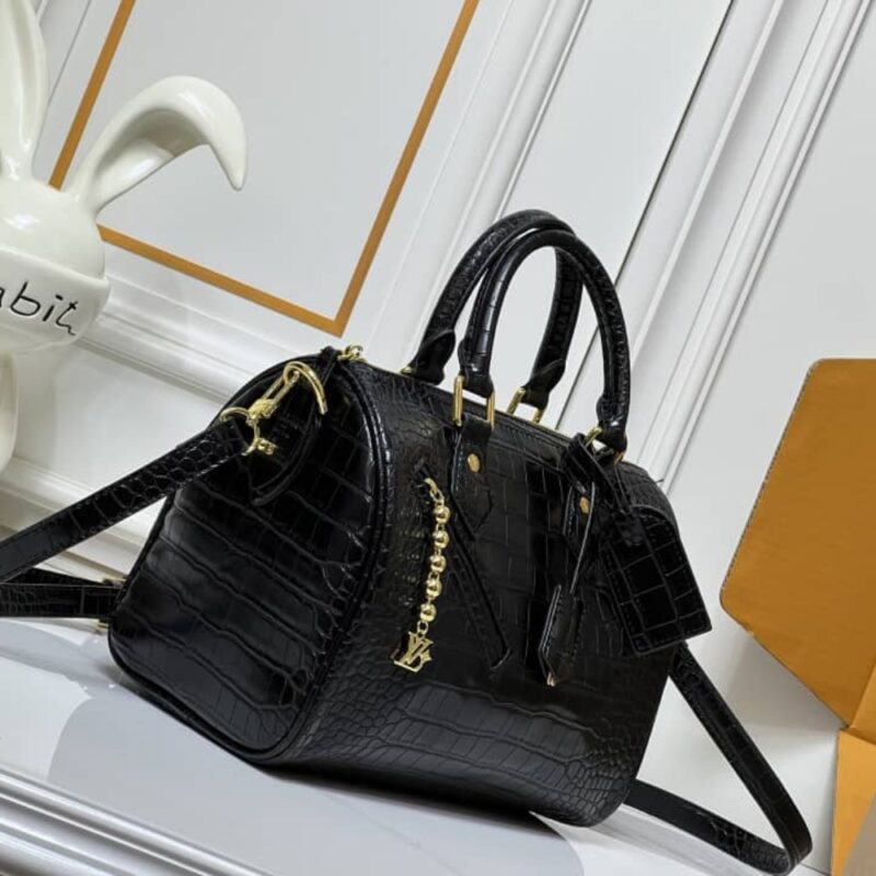 Louis Vuitton Speedy Satchel Bag Black / 9.8 x 5.9 x 5.9 inches / Gold-toned hardware / Fits smartphone, Wallet / Daily bags