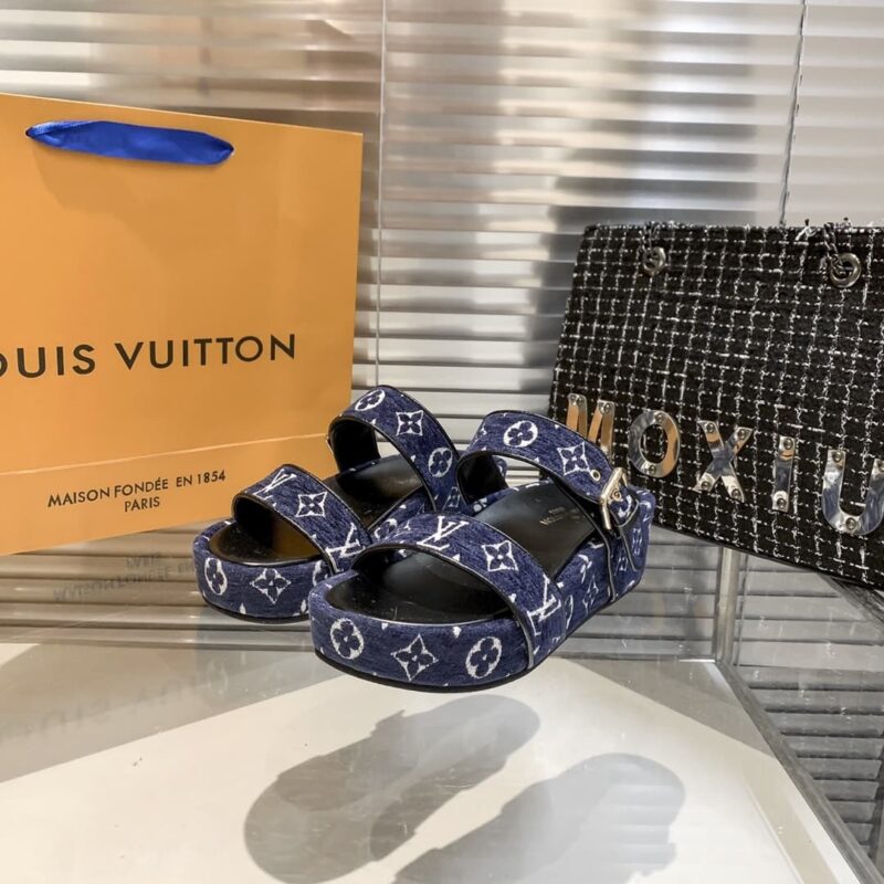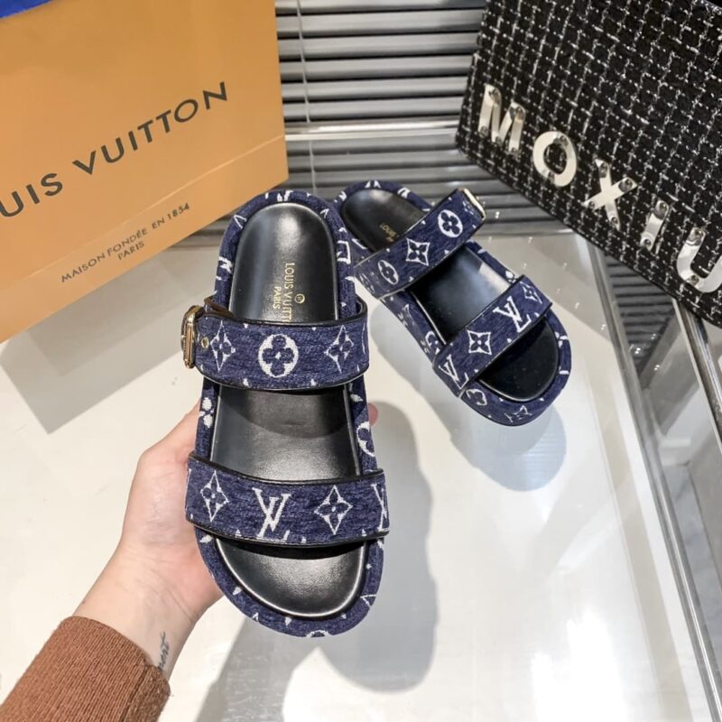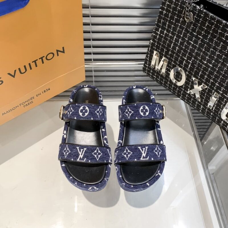 LOUIS VUITTON TWO STRAP SANDAL NAVY BLUE