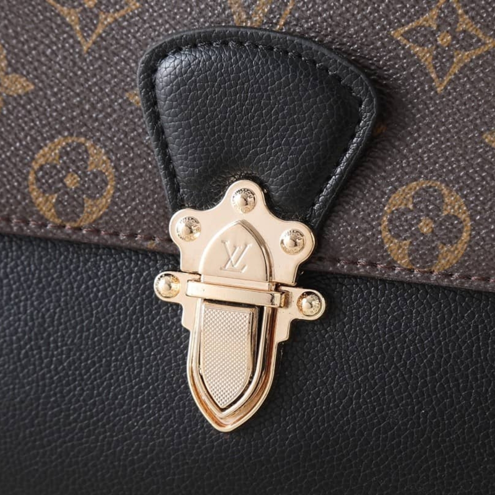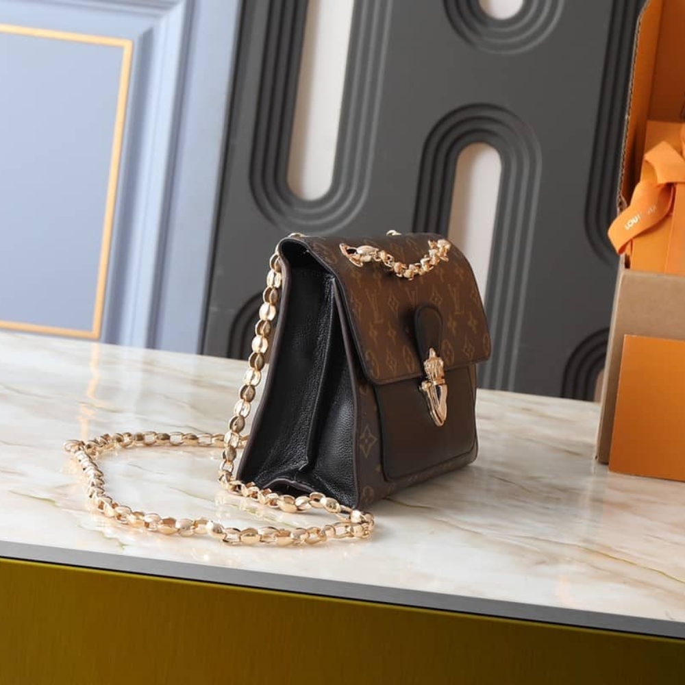 The Louis Vuitton Victoire in Monogram canvas and black leather is a sophisticated day-to-night bag that seamlessly blends archival House codes with modern flair. Its spacious interior is intelligently divided by a central zippered pocket, providing organized storage for all your daily essentials in one elegant package