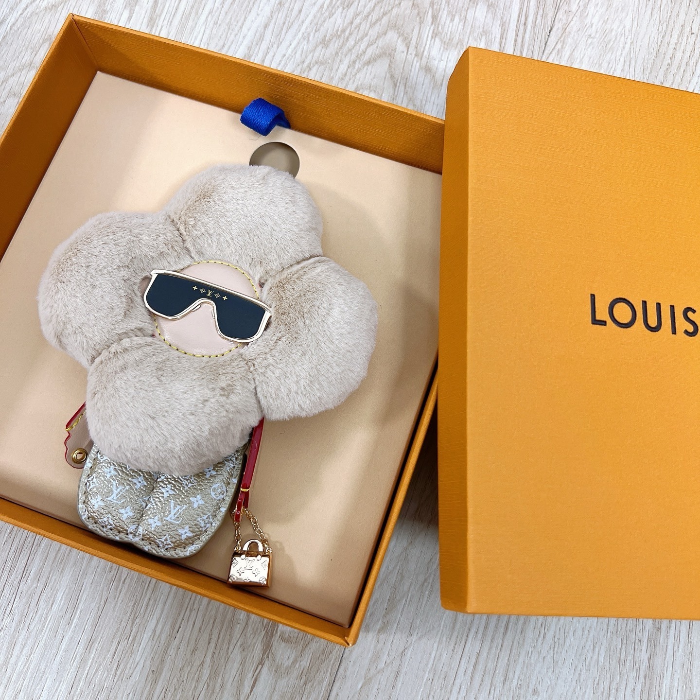 Louis Vuitton Vivienne Bag Charm / Vivienne character / Mink fur flower / Gold-tone metal / Bag Charms