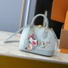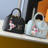 Statement signatures from the re-edition of the Louis Vuitton x Murakami collection refresh the iconic Alma BB handbag with a spirited twist. The front is embellished with a playful reimagining of the LV Initials in the Japanese artist’s vernacular superflat style, which is complemented by a removable Panda charm in bold tones. The elegant Art Deco-inspired design is complete with two top handles, a removable strap and a golden padlock detail.