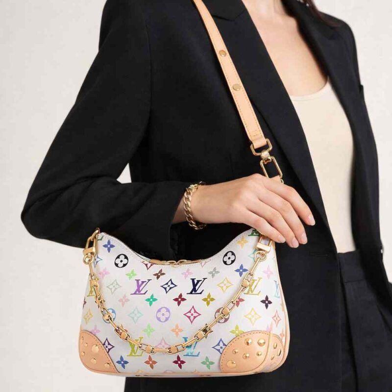 This exclusive edition of the Boulogne PM pays tribute to the House’s iconic Monogram, which celebrates 130 years of existence. It is made from signature Monogram canvas in a joyful Multicolor palette and is adorned with gold-toned hardware, including stud embellishment on the leather corners. Inside, there is an exclusive anniversary label to mark this special occasion in Louis Vuitton history.