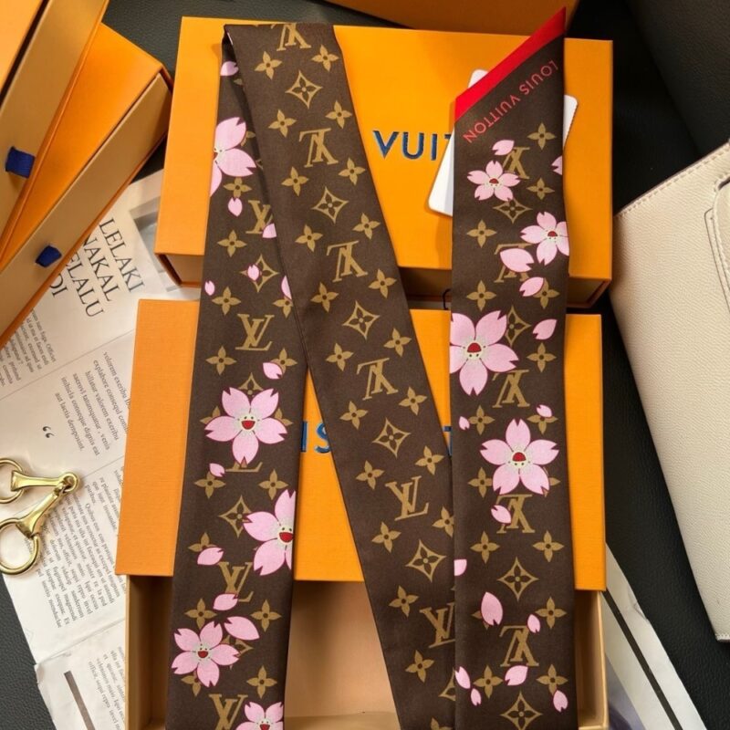 LOUIS VUITTON X TAKASHI MURAKAMI MONOGRAM CHERRY BLOSSOM BANDEAU BB IN TAN 120CM M96084