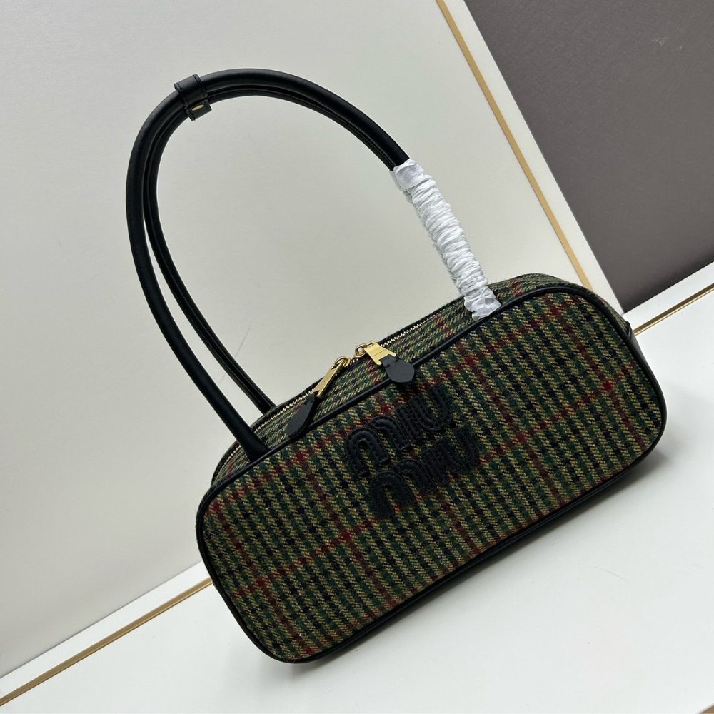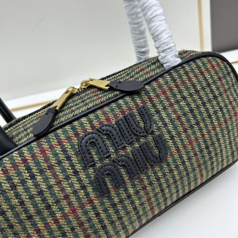 Miumiu Beau Top Handle Tratan Bag Green 5BB173 2DU5 F0466 V OWH/ 28 cm/ 11 inches