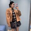 - Front zipper closure