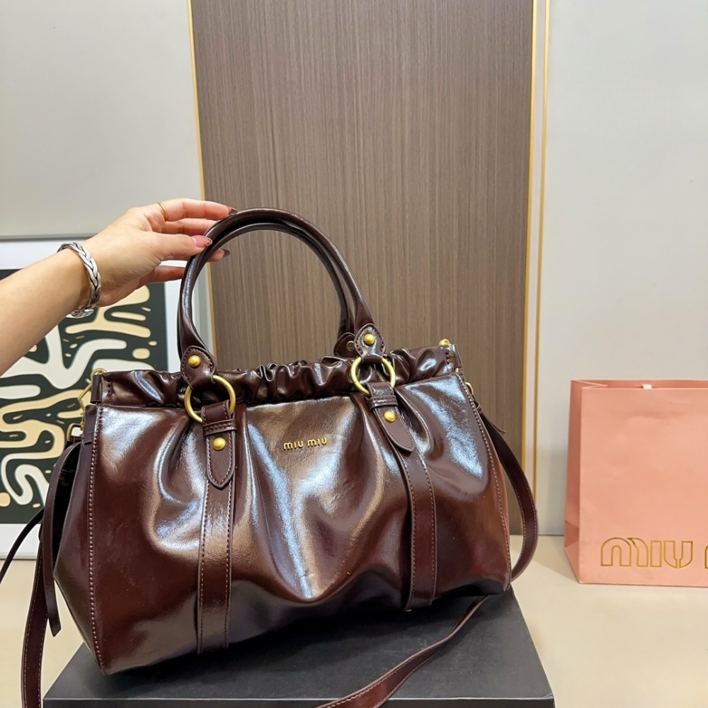 Miu Miu Side Ribbon 2Way HandBag Burgundy 33Cm / 13.0 inches
