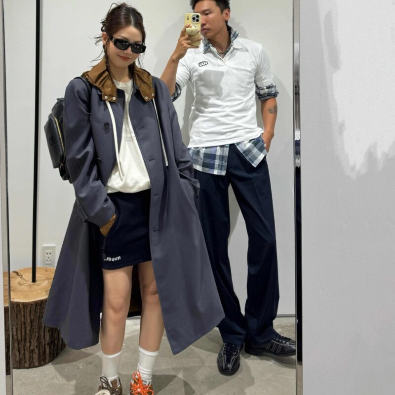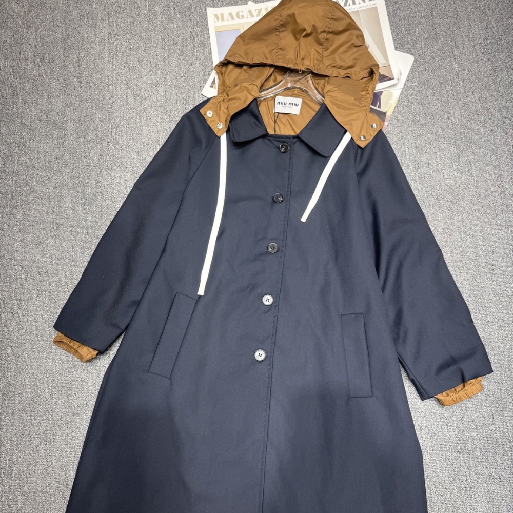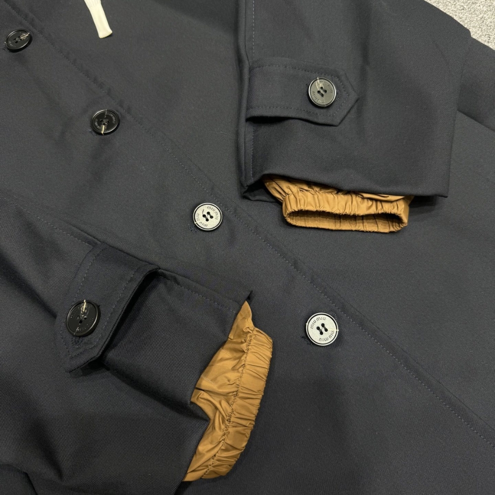 MIU MIU SINGLE BREASTED KID MOHAIR AND TECHNICAL PONGE COAT NAVY MS2101 17HV F045O S OOO
