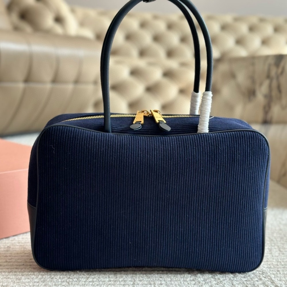 MiuMiu Beau Corduroy Top Handle Bag Navy 35Cm 5BB163 2F81 F0124 V OOO